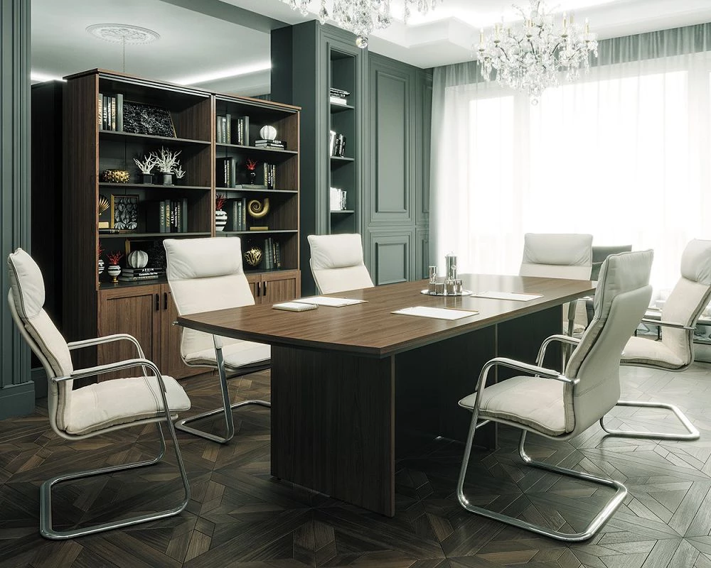 Клиент остался доволен комплектом мебели для переговорной комнаты, подчеркнув его классический дизайн, натуральные цвета дерева, а также комфорт и качество. Сервис получил положительную оценку. Недостатки отсутствуют.